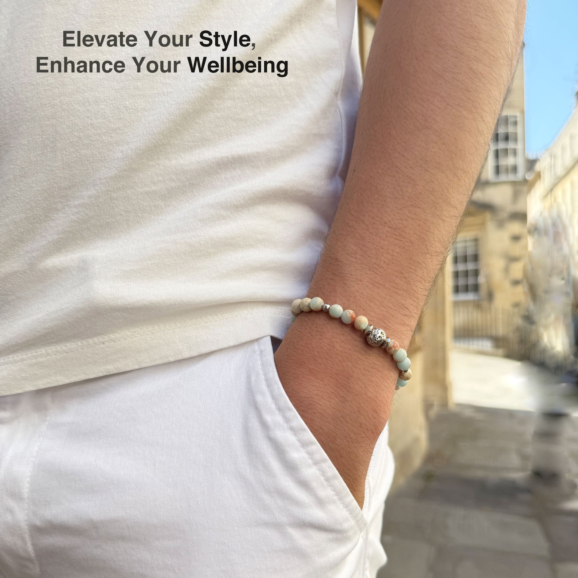 🌊 ELEVATE YOUR STYLE & WELLBEING – Discover balance and tranquillity with this Blue Ocean Jasper and Lava Rock bracelet, designed for men who value sophistication and inner peace. Its serene blue tones and silver detailing create a timeless, masculine look.